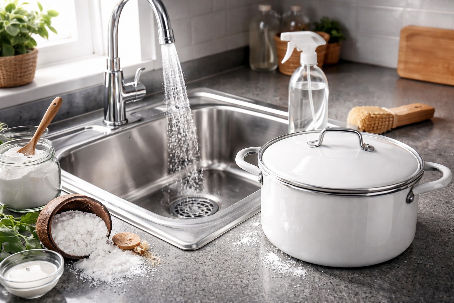 Za posuđe bez neprianjajućeg sloja dobro funkcionira žarenje sa solju. Ovo je stara metoda koja pomaže ukloniti naslage ugljika i dezinficirati površinu. Međutim, vrijedi zapamtiti da se sol ne smije koristiti na nehrđajućem čeliku dulje vrijeme, jer to može uzrokovati potamnjenje metala.